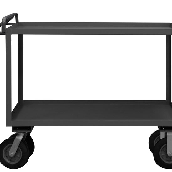 Stock Cart, 2 Shelves, 24 x 30, 14 Gauge, 1200 lbs. Capacity, Ergonomic Handle, 8" x 2-1/4" Semi-Pneumatic Casters - (2) Rigid, (2) Swivel, Gray