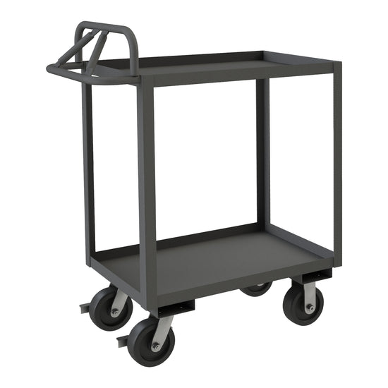 Stock Cart, 2 Shelves, 24 x 36, 14 Gauge, 3600 lbs. Capacity, Ergonomic Handle, 6" x 2" Phenolic Casters - (2) Rigid, (2) Swivel with Side Brakes, Gray