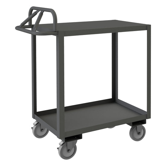 Stock Cart, 2 Shelves, 24 x 36, 14 Gauge, 1200 lbs. Capacity, Ergonomic Handle, 5" x 1-1/4" Polyurethane Casters - (2) Rigid, (2) Swivel with Side Brakes, Gray