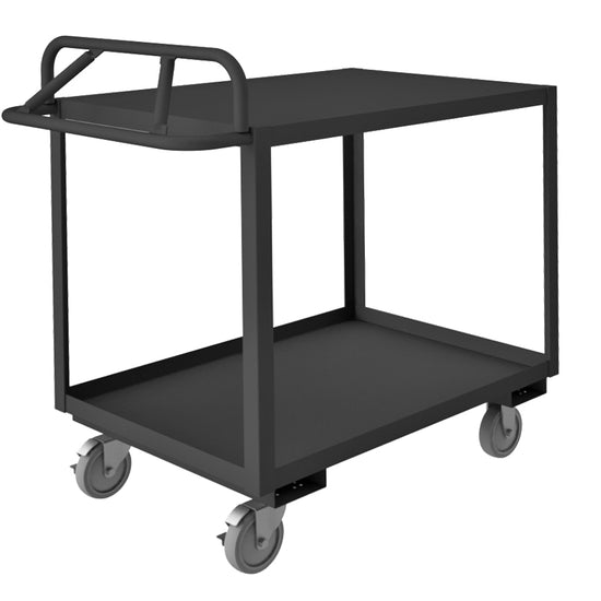 Stock Cart, 2 Shelves, 24 x 36, 14 Gauge, 1200 lbs. Capacity, Ergonomic Handle, 5" x 1-1/4" Polyurethane Casters - (2) Rigid, (2) Swivel with Side Brakes, Gray