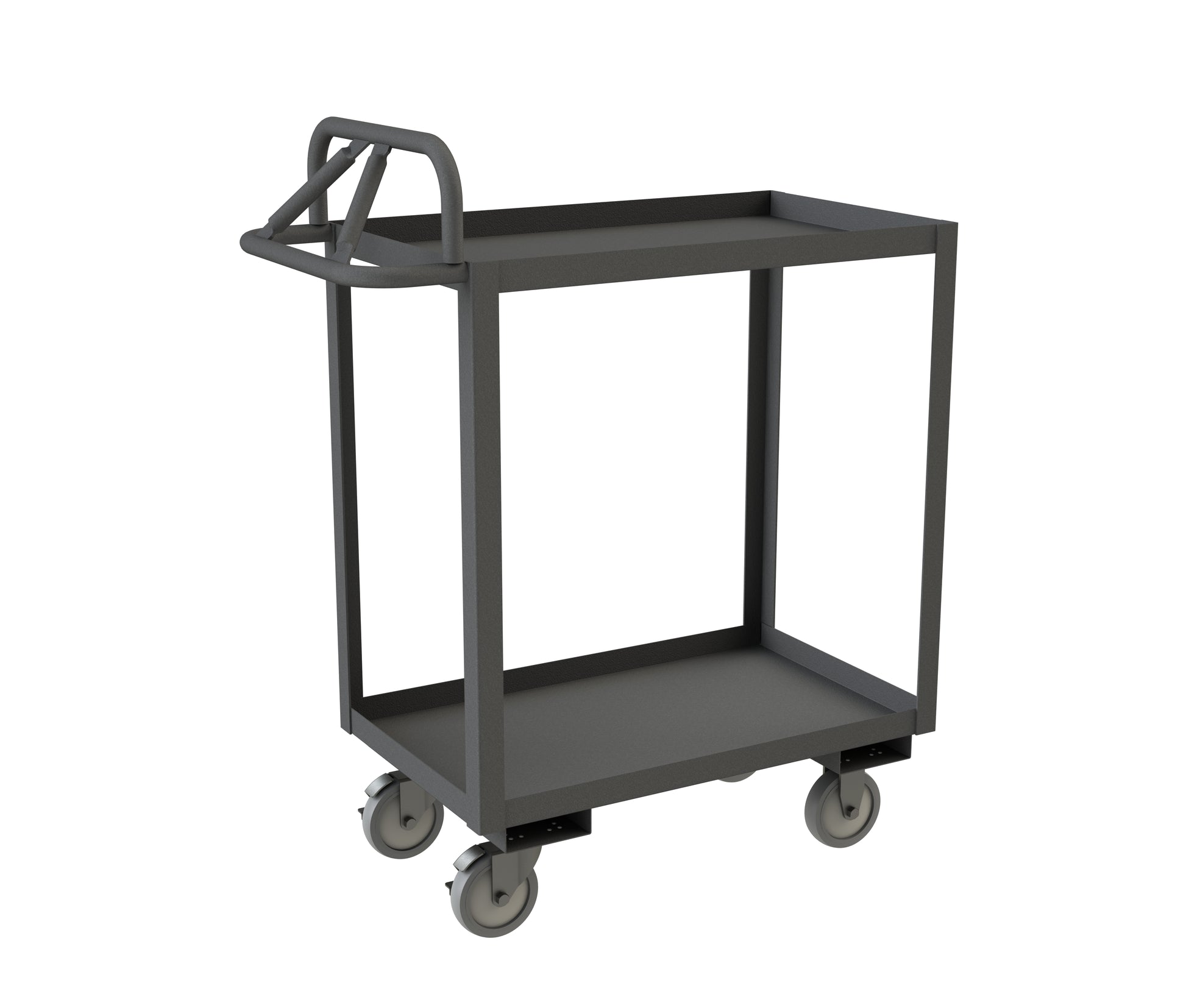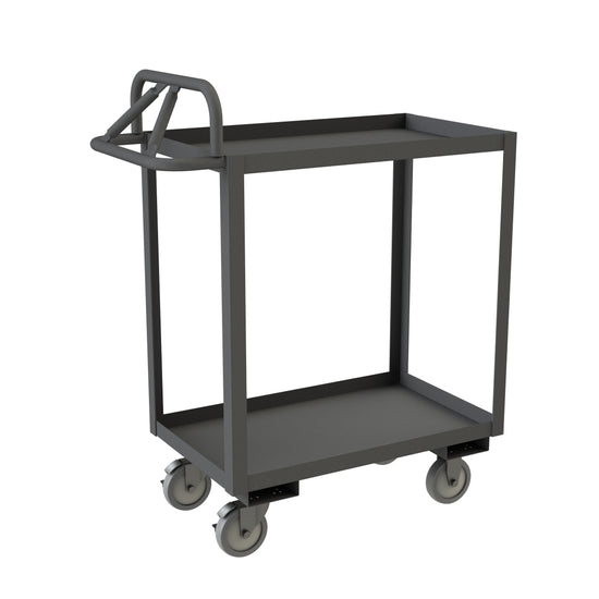 Stock Cart, 2 Shelves, 24 x 48, 14 Gauge, 1200 lbs. Capacity, Ergonomic Handle, 5" x 1-1/4" Polyurethane Casters - (2) Rigid, (2) Swivel with Side Brakes, Gray