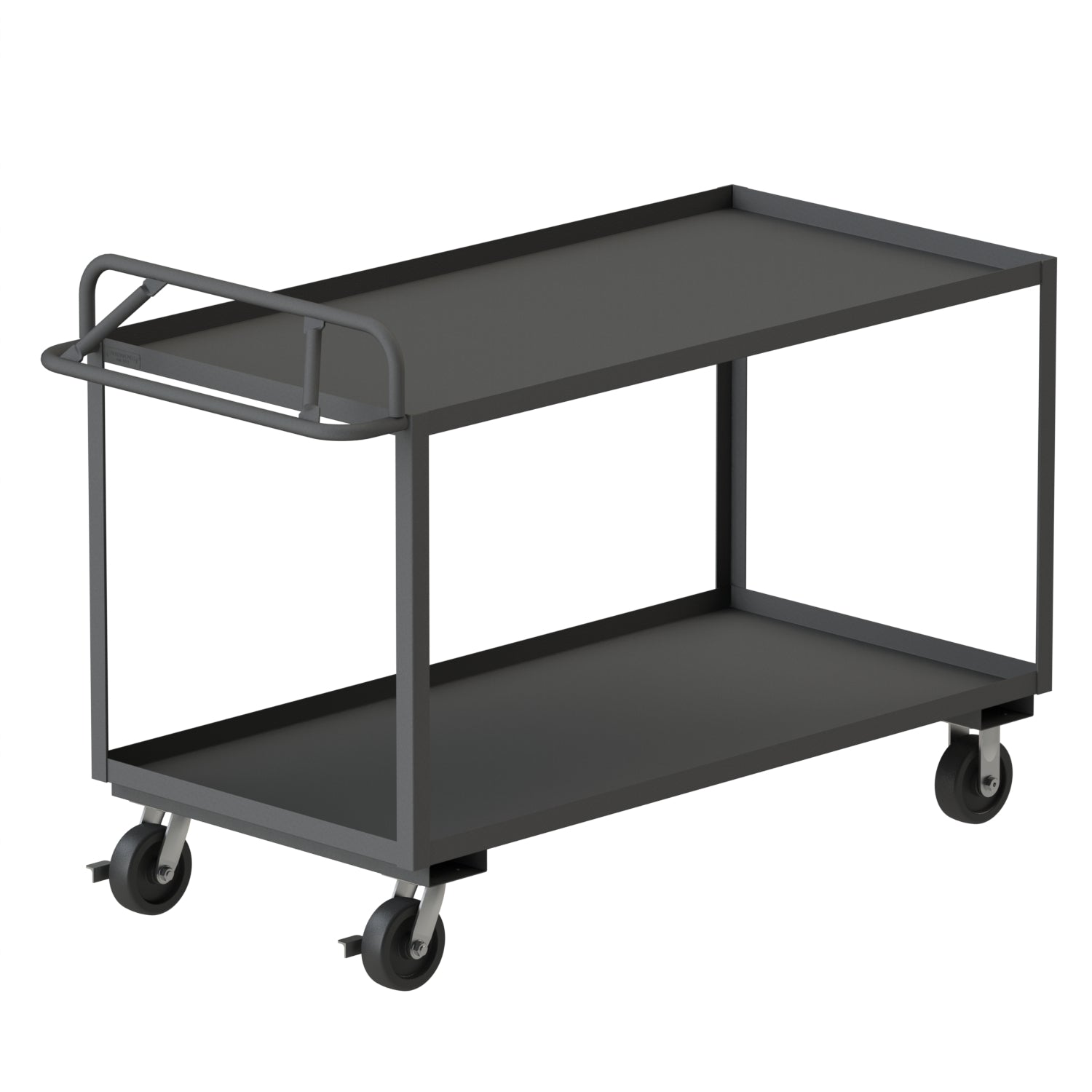 Stock Cart, 2 Shelves, 30 x 60, 14 Gauge, 3600 lbs. Capacity, Ergonomic Handle, 6" x 2" Phenolic Casters - (2) Rigid, (2) Swivel with Side Brakes, Gray
