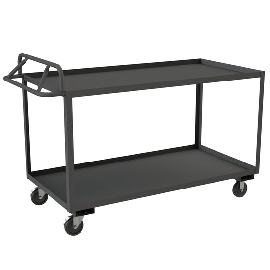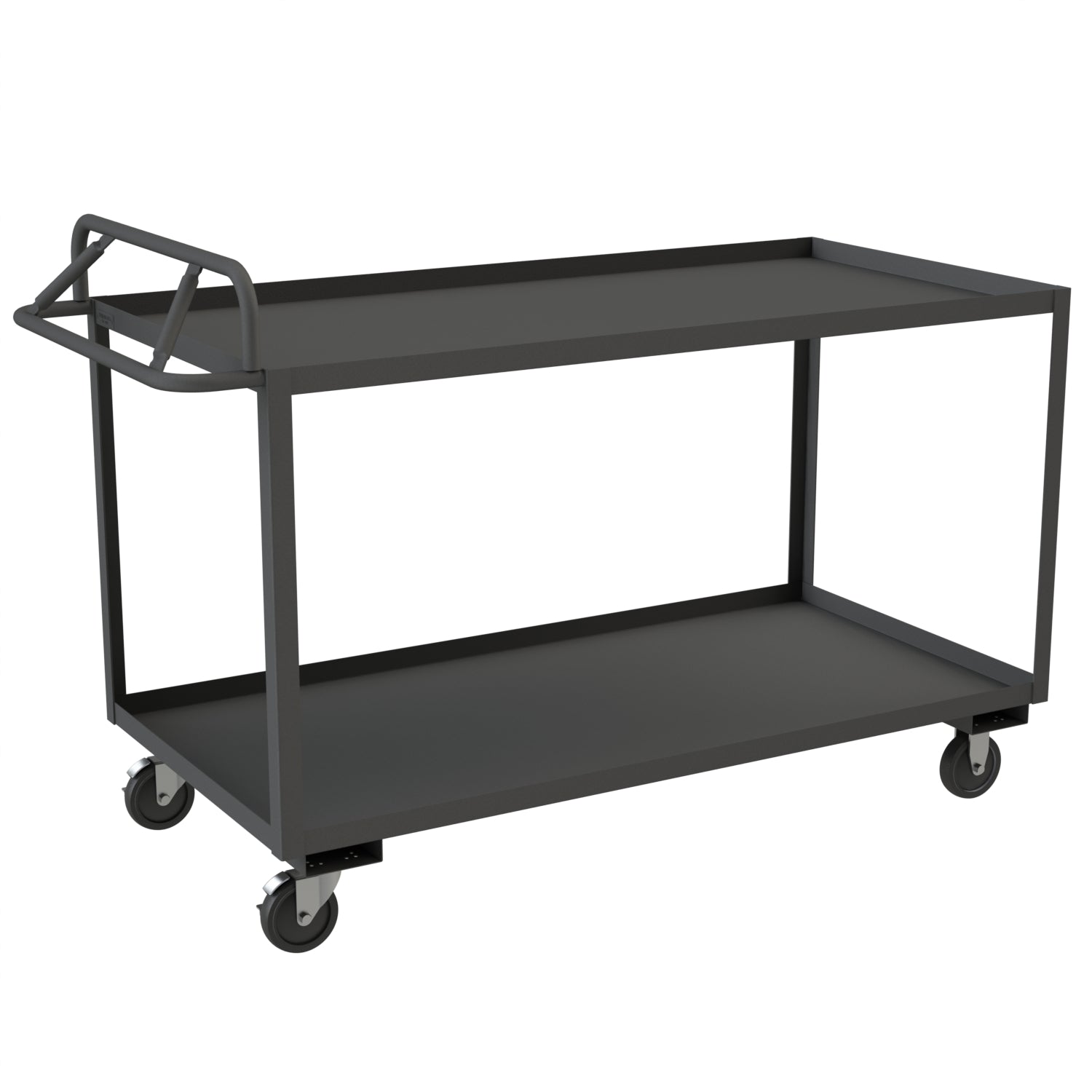 Stock Cart, 2 Shelves, 30 x 60, 14 Gauge, 1200 lbs. Capacity, Ergonomic Handle, 5" x 1-1/4" Polyurethane Casters - (2) Rigid, (2) Swivel with Side Brakes, Gray