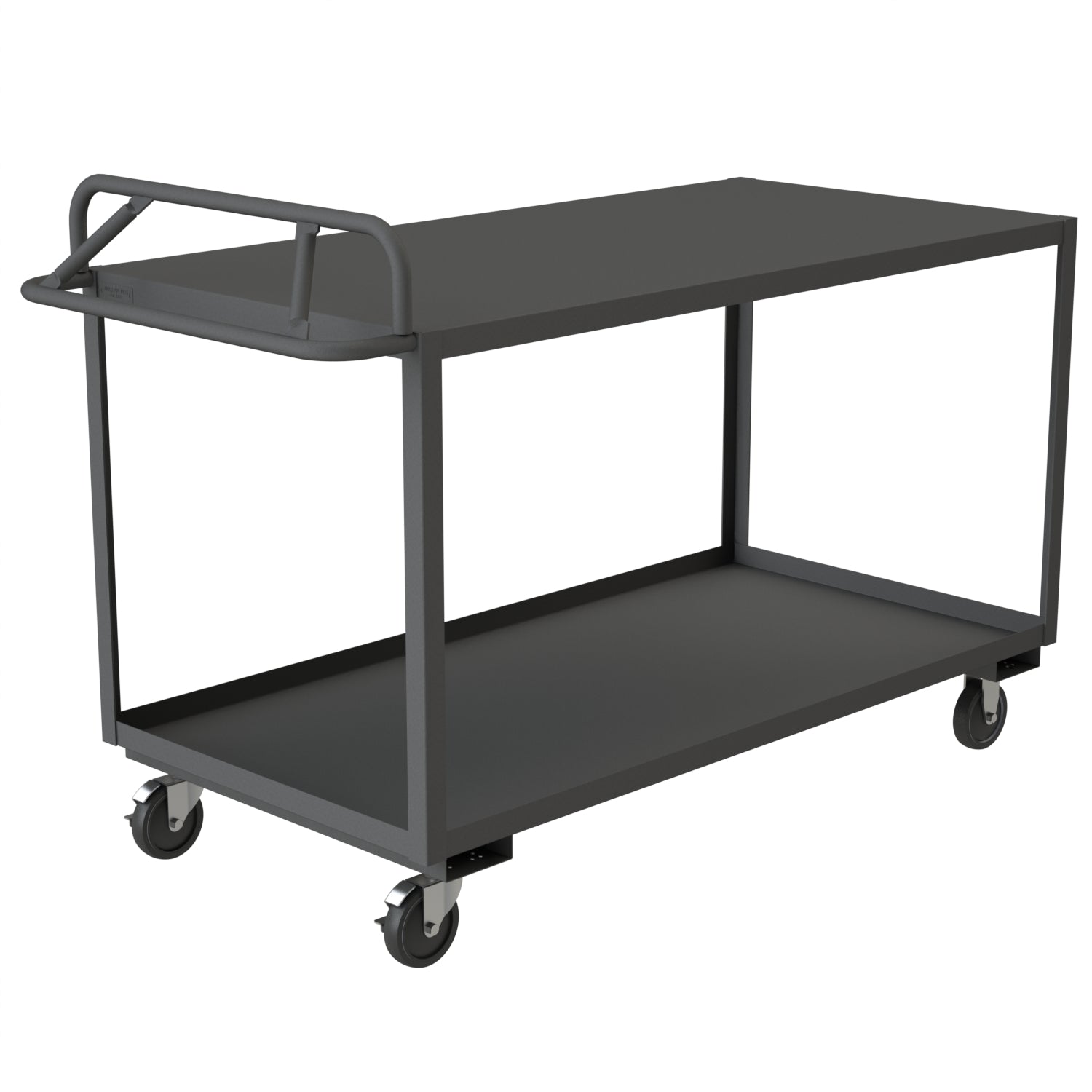Stock Cart, 2 Shelves, 30 x 60, 14 Gauge, 1200 lbs. Capacity, Ergonomic Handle, 5" x 1-1/4" Polyurethane Casters - (2) Rigid, (2) Swivel with Side Brakes, Gray