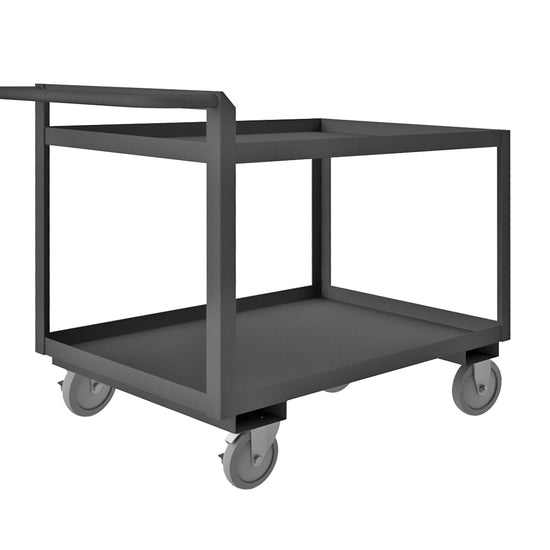 Stock Cart, 2 Shelves, 24 x 30, 14 Gauge, 1200 lbs. Capacity, Raised Handle, 5" x 1-1/4" Polyurethane Casters - (2) Rigid, (2) Swivel with Side Brakes, Gray