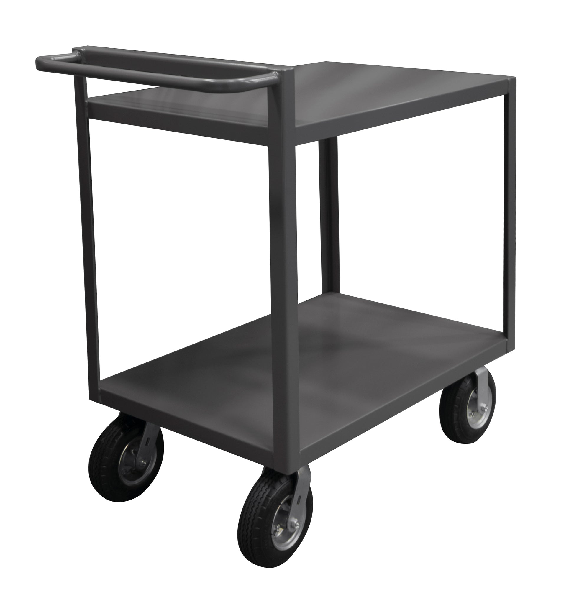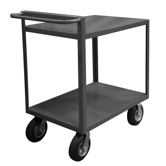 Stock Cart, 2 Shelves, 30 x 60, 14 Gauge, 1500 lbs. Capacity, Raised Handle, 8" x 2-3/4" Pneumatic Casters - (2) Rigid, (2) Swivel, Gray