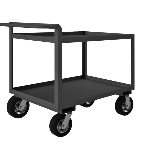 Stock Cart, 2 Shelves, 24 x 36, 14 Gauge, 1500 lbs. Capacity, Raised Handle, 8" x 2-3/4" Pneumatic Casters - (2) Rigid, (2) Swivel, Gray