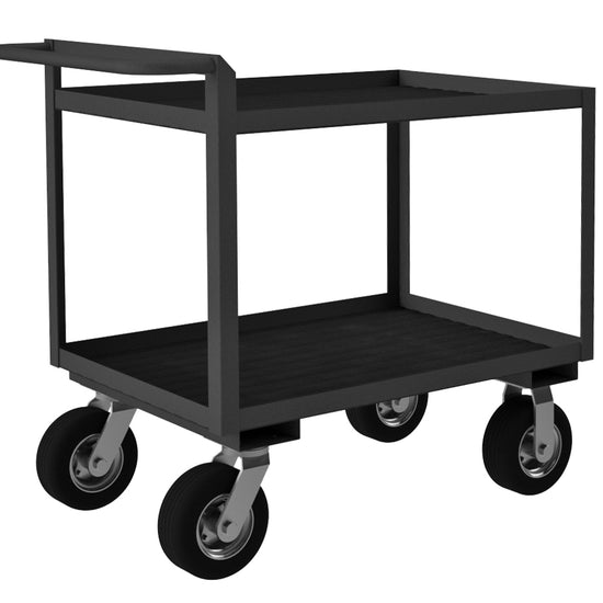 Rolling Service Cart With 8" X 3" Pneumatic Casters, (2) Rigid, (2) Swivel, 2 Shelves, Rubber Matting, All 1-1/2" Lips Up With Raised Tubular Push Handle, Gray