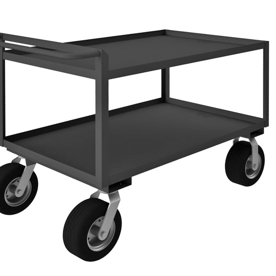 Stock Cart, 2 Shelves, 30 x 48, 14 Gauge, 1500 lbs. Capacity, Raised Handle, 10" x 2-9/16" Semi-Pneumatic Casters - (2) Rigid, (2) Swivel, Gray