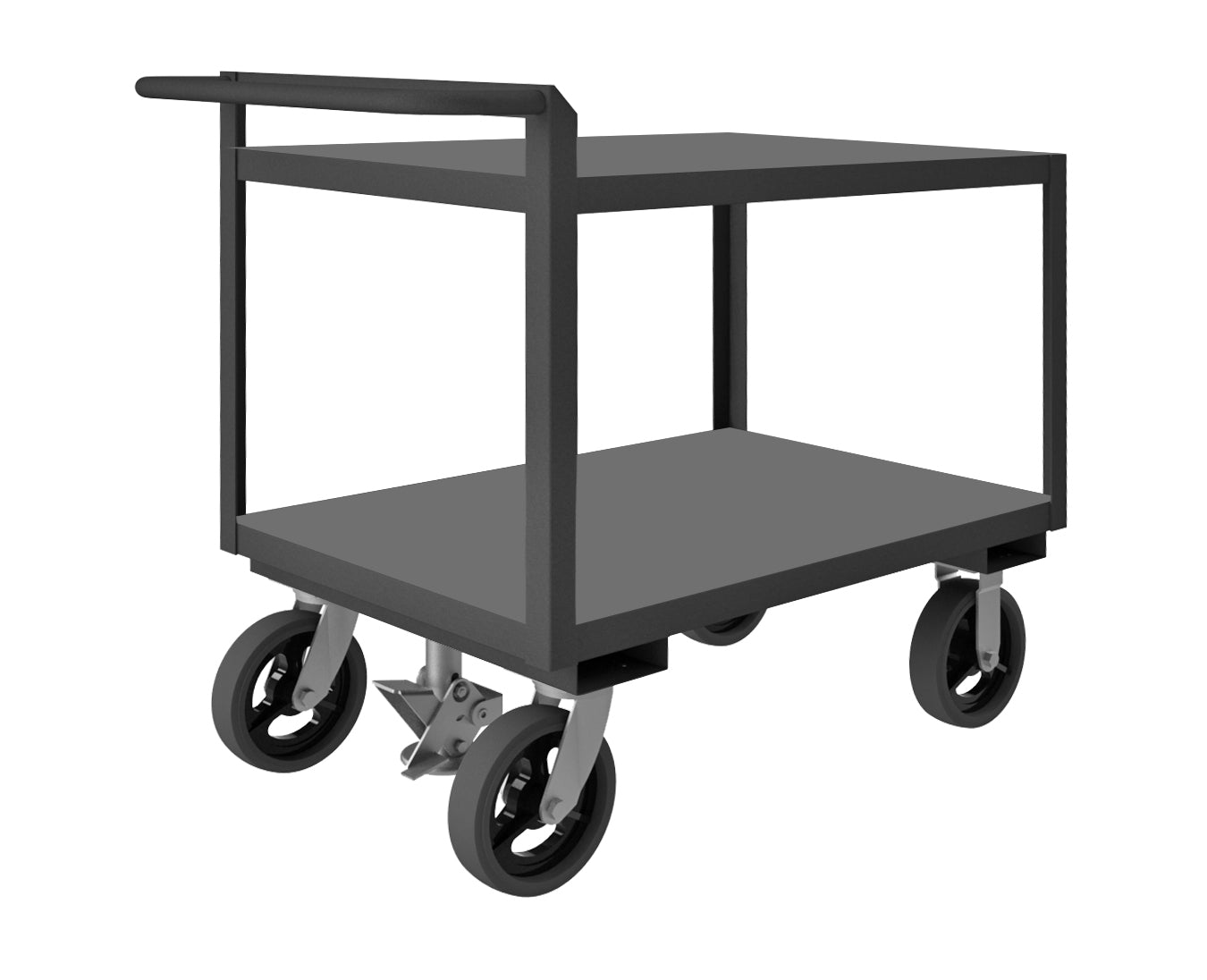 Stock Cart, 2 Shelves, 30 x 60, 14 Gauge, 2400 lbs. Capacity, Raised Handle, Floor Lock, 8" x 2" Mold-On Rubber Casters - (2) Rigid, (2) Swivel, Gray