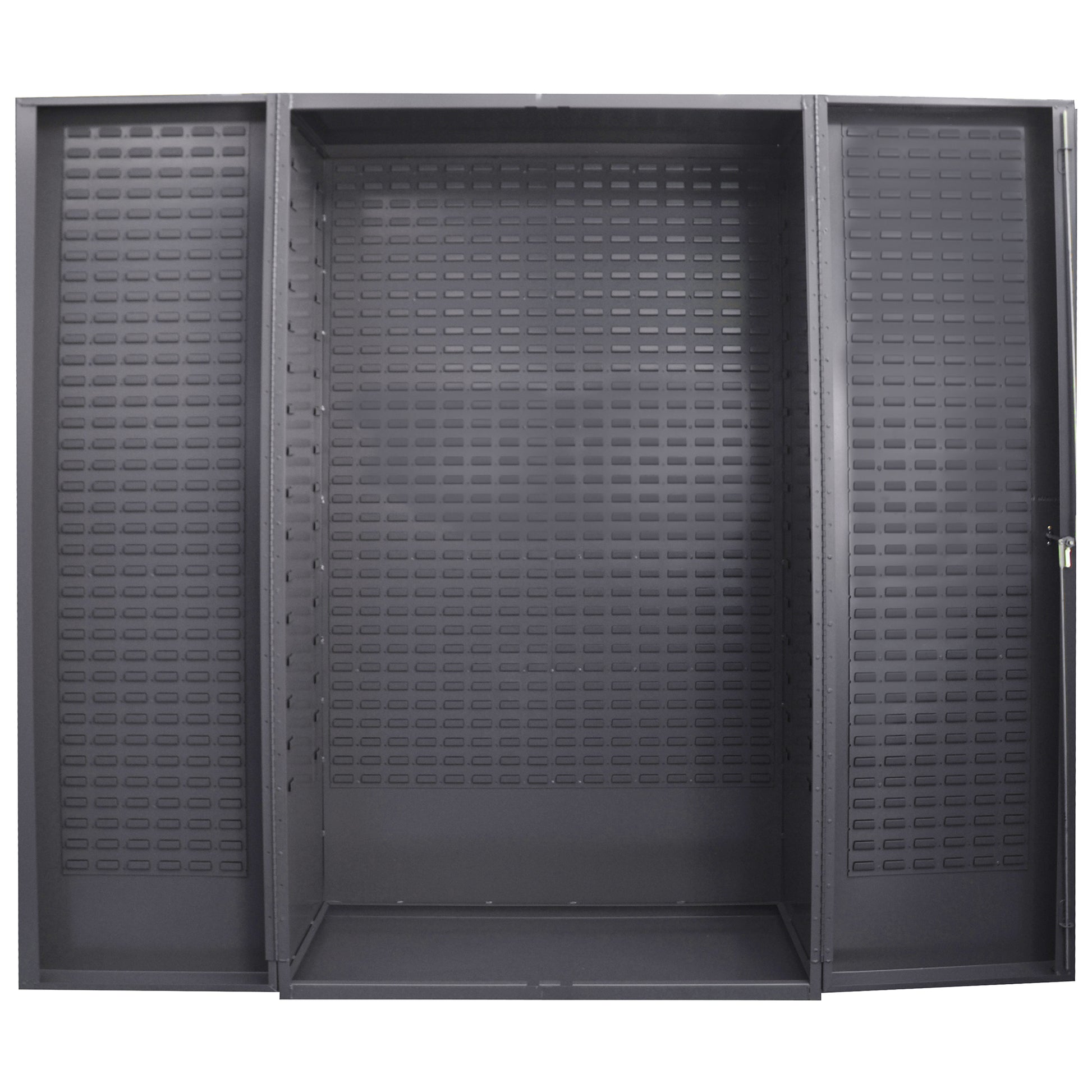 Heavy Duty Cabinet, 14 Gauge, 48 x 24 x 84, 4" Deep Box Doors with Louvered Panel, Lockable, Chrome Handle with Keys, Gray