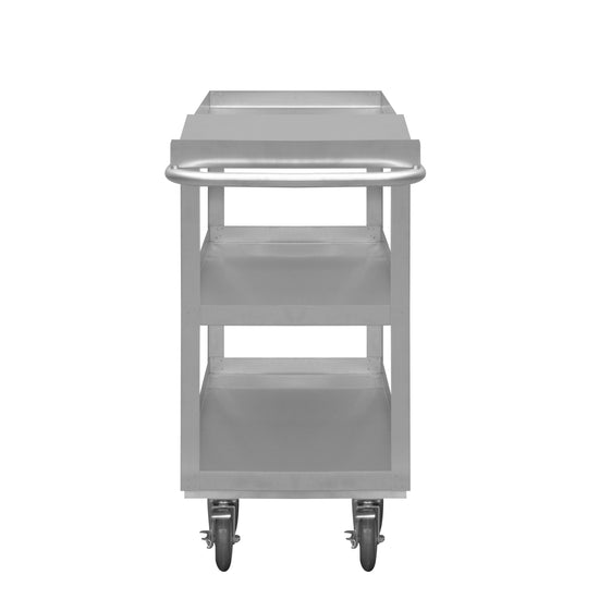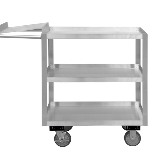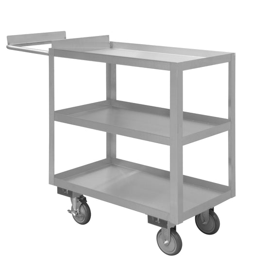 Stainless Order Picking Cart with 5" x 1-1/4" Polyurethane Casters - (2) Rigid, (2) Swivel with Side Brakes, 2 Shelves with 1-1/2" Lips Up, Writing Shelf, Tubular Push Handle, Stainless
