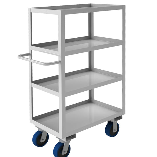 Stainless Steel Stock Cart, 4 Shelves, 16 Gauge, 1200 lbs. Capacity, 6" x 2" Polyurethane Casters - (2) Rigid, (2) Swivel, All 1-1/2" Lips up, Tubular Push Handle