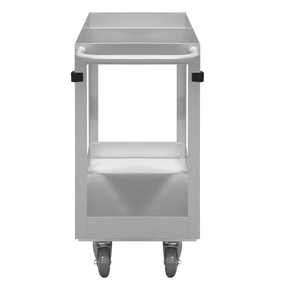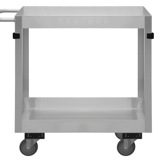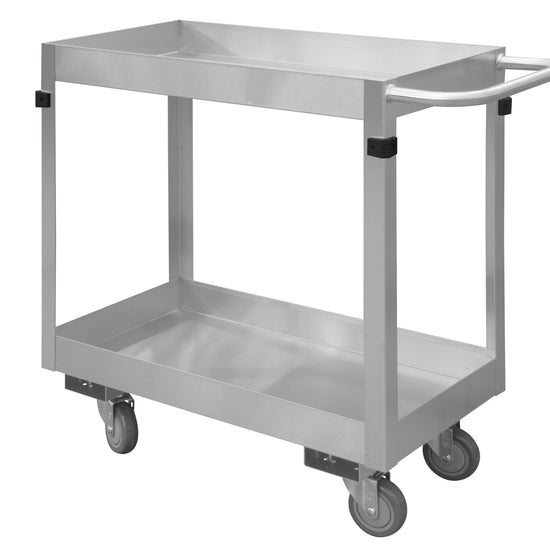 Stainless Steel Stock Cart, 2 Shelves, 20 Gauge, 600 lbs. Capacity, 4" x 1-1/4" Polyurethane Casters - (4) Swivel, 4 Bumper Guards, All 3" Lips up, Tubular Push Handle