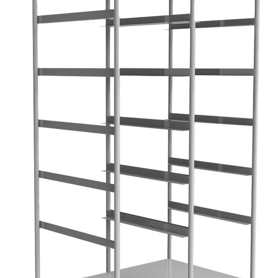 Stainless Steel Tub Rack Cart with 5" x 1-1/4" Polyurethane Casters - (2) Rigid, (2) Swivel with Side Brakes, (12) Gray Bins, Tubular Frame, Support Rails