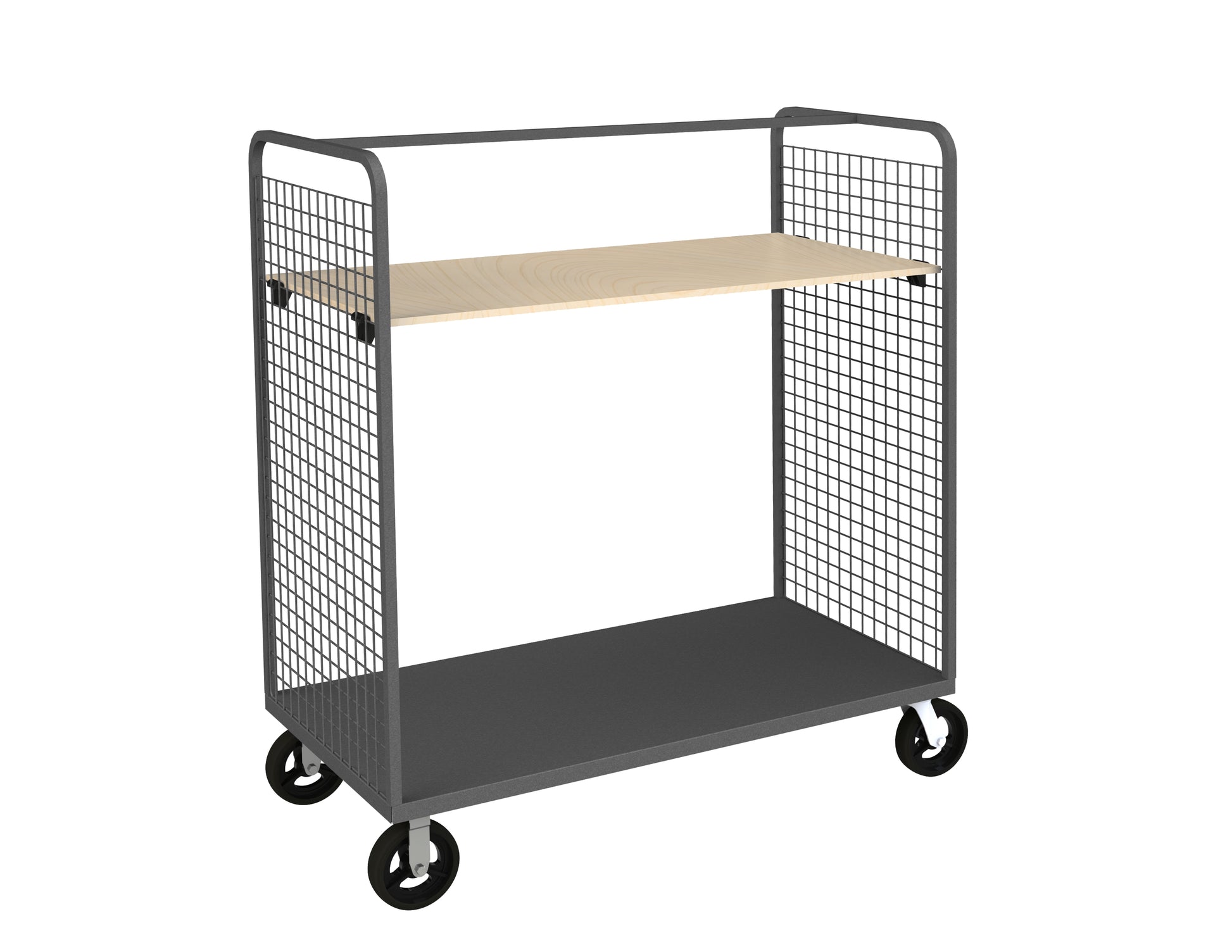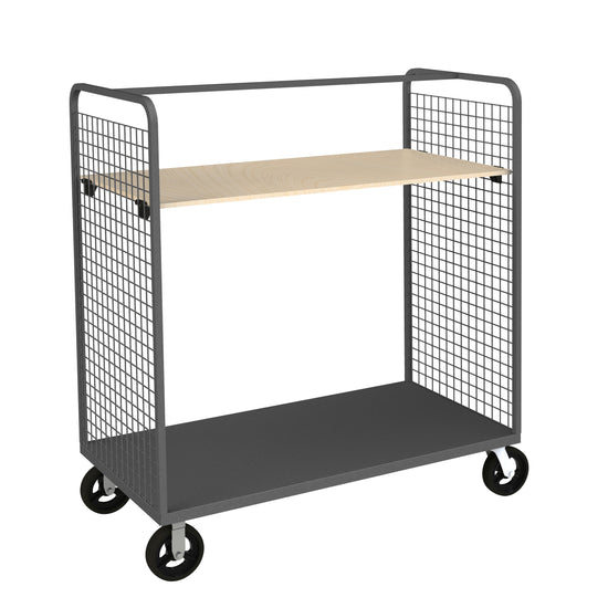 Wire Cart with 8" x 2" Mold-On-Rubber Casters - (2) Rigid, (2) Swivel, 1 Base, 1 Adjustable Shelf with 4 Plastic Shelf Holders, Gray