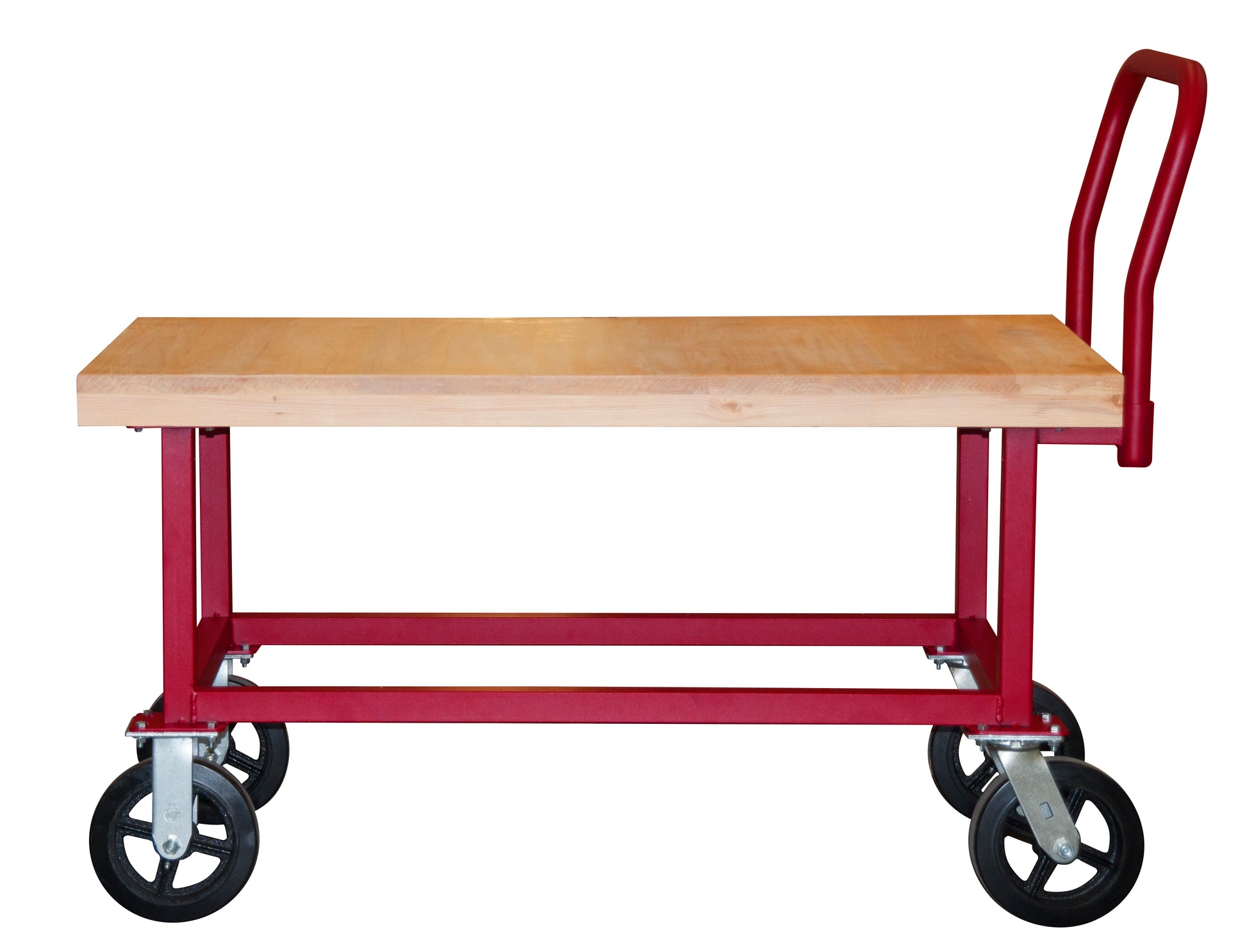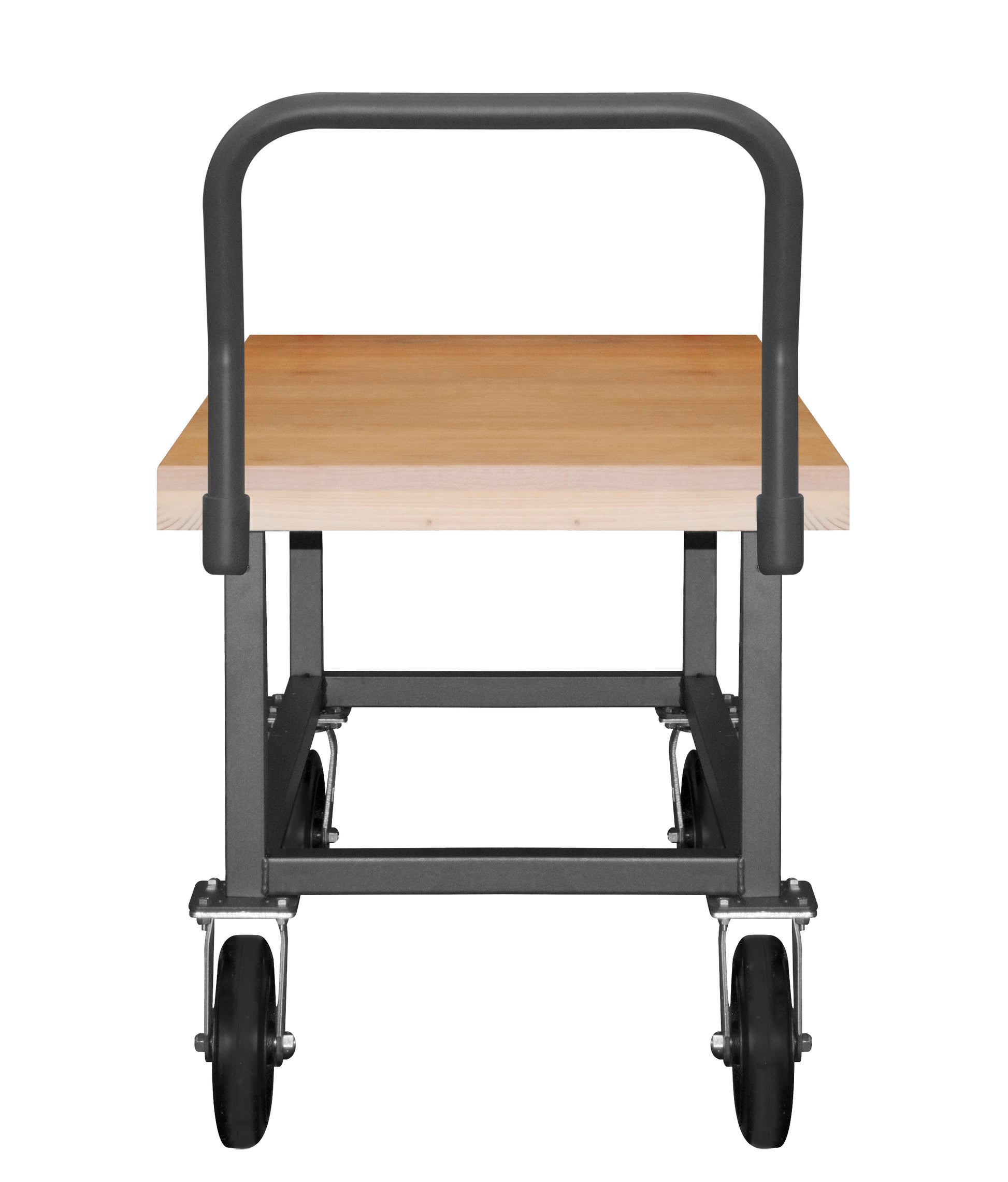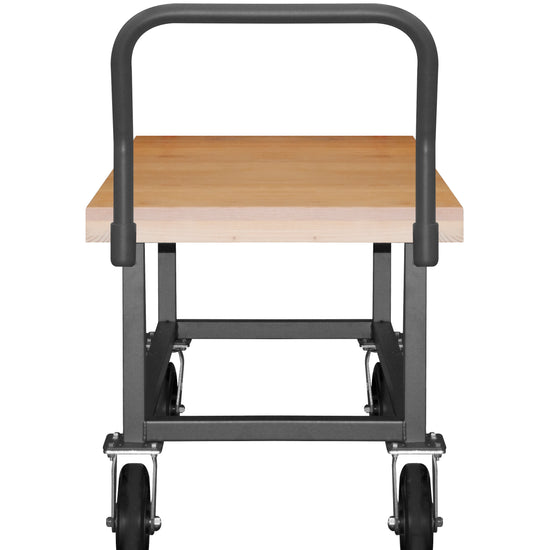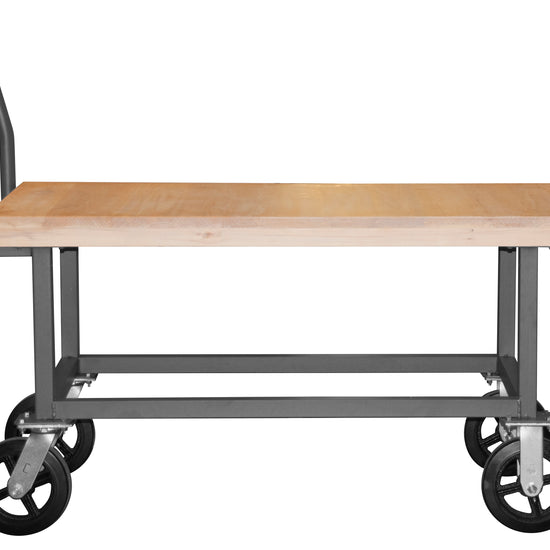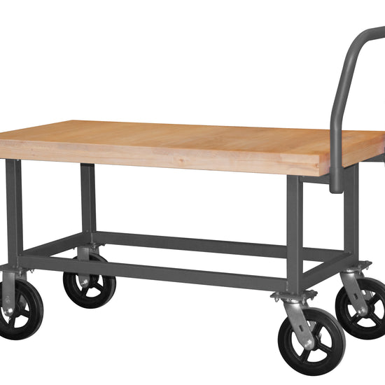 Platform Truck, Work Height, 14 Gauge, 1800 lbs Capacity, Wood Shelf, 24 x 48, Flush Deck, 8" x 2" Mold-On Rubber Casters - (2) Rigid, (2) Swivel, Gray
