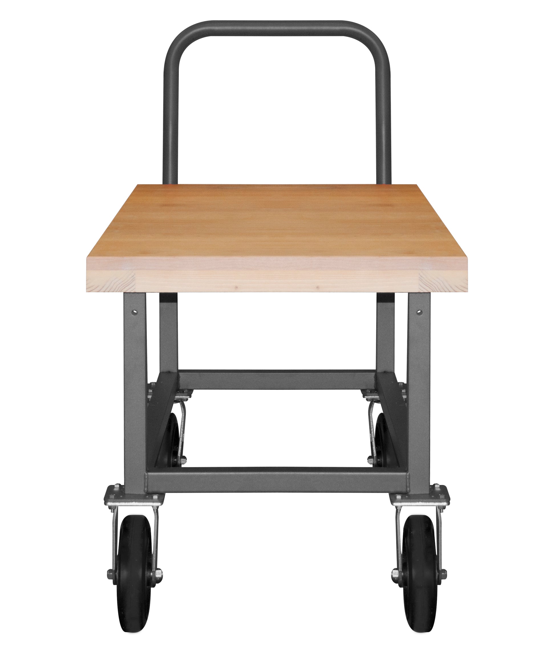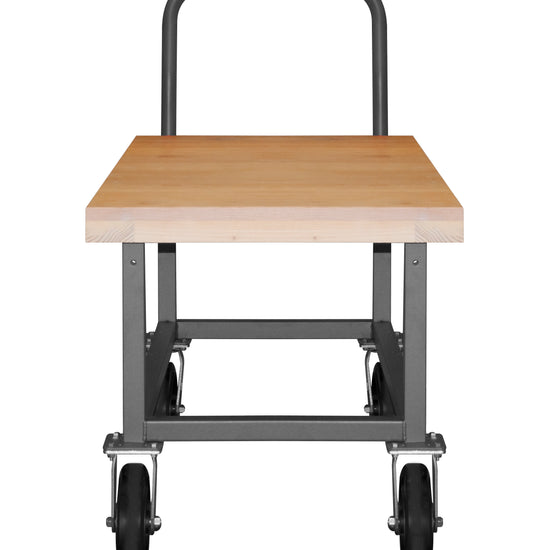 Platform Truck, Work Height, 14 Gauge, 1800 lbs Capacity, Wood Shelf, 30 x 60, Flush Deck, 8" x 2" Mold-On Rubber Casters - (2) Rigid, (2) Swivel, Gray