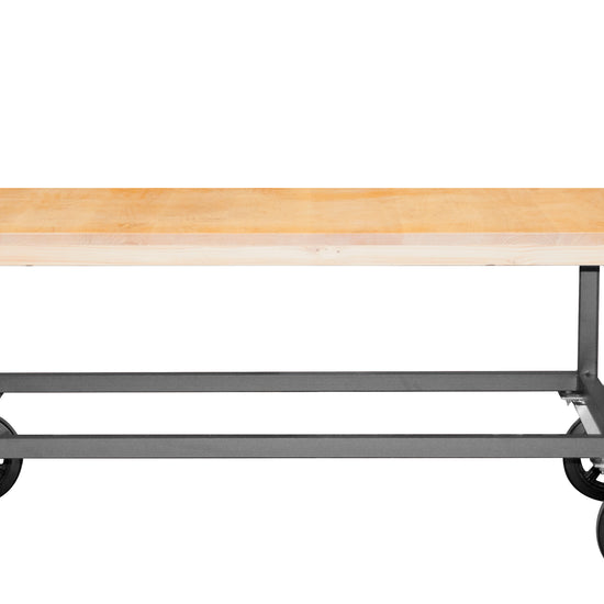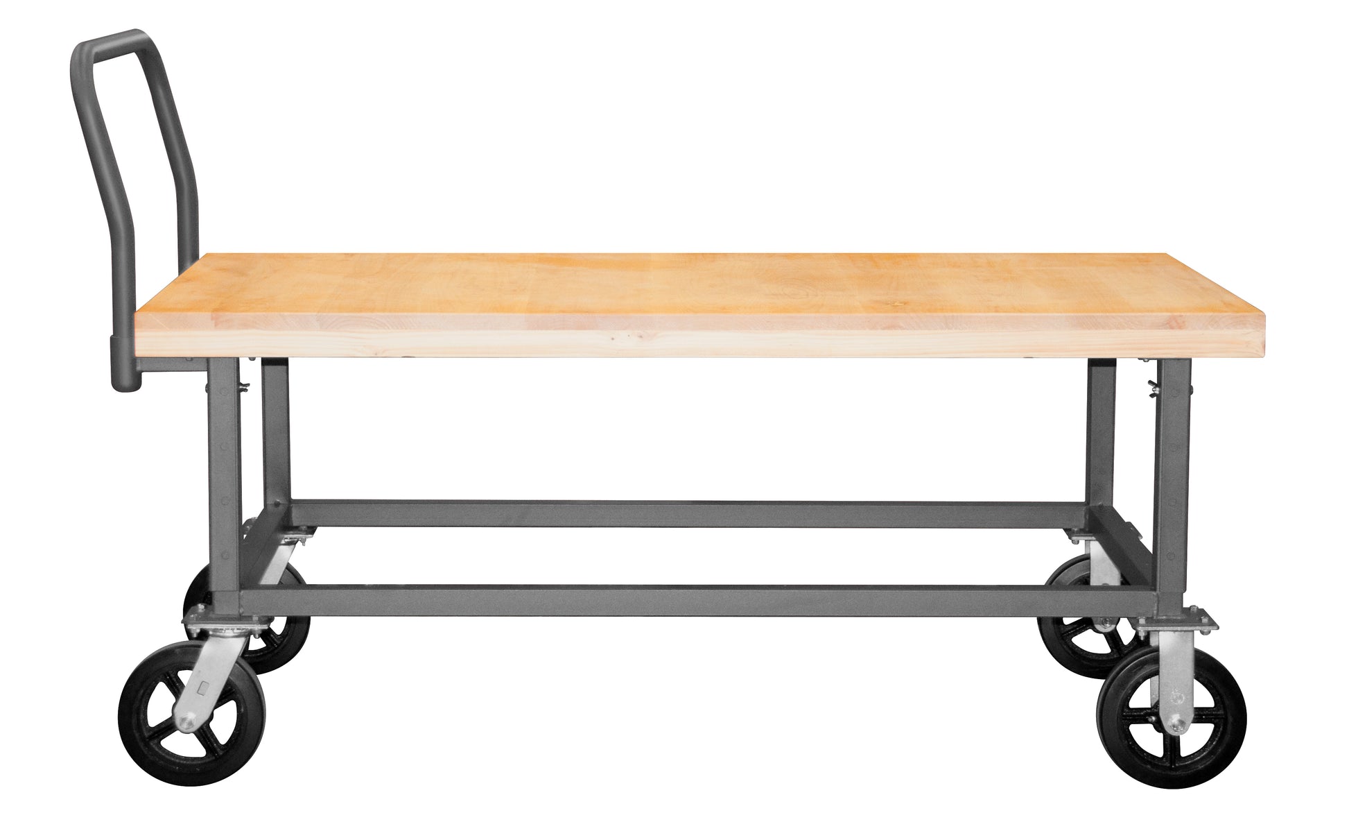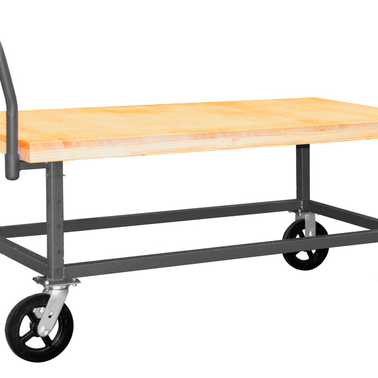 Platform Truck, Adjustable Work Height, 14 Gauge, 1800 lbs Capacity, Wood Shelf, 30 x 60, Flush Deck, 8" x 2" Mold-On Rubber Casters - (2) Rigid, (2) Swivel, Gray